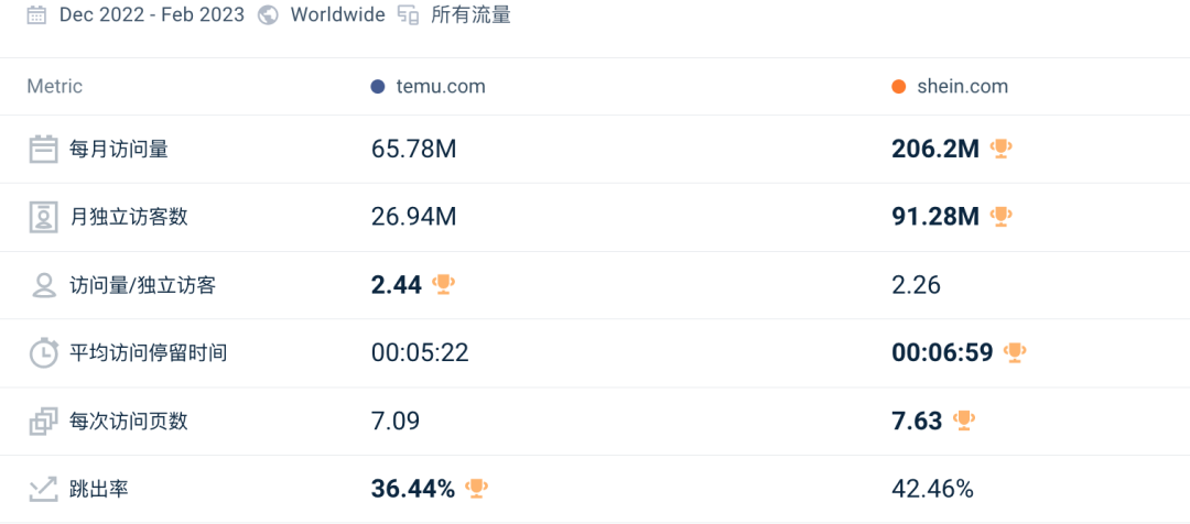 近三個月內,Temu 與 SHEIN 的流量對比 數據來源|similarweb