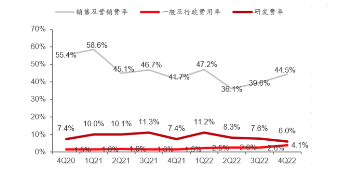 拼多多 2020 年 Q4-2022 年 Q4 分季度主要費用率 圖片來源|公司公告、中泰證券研究所