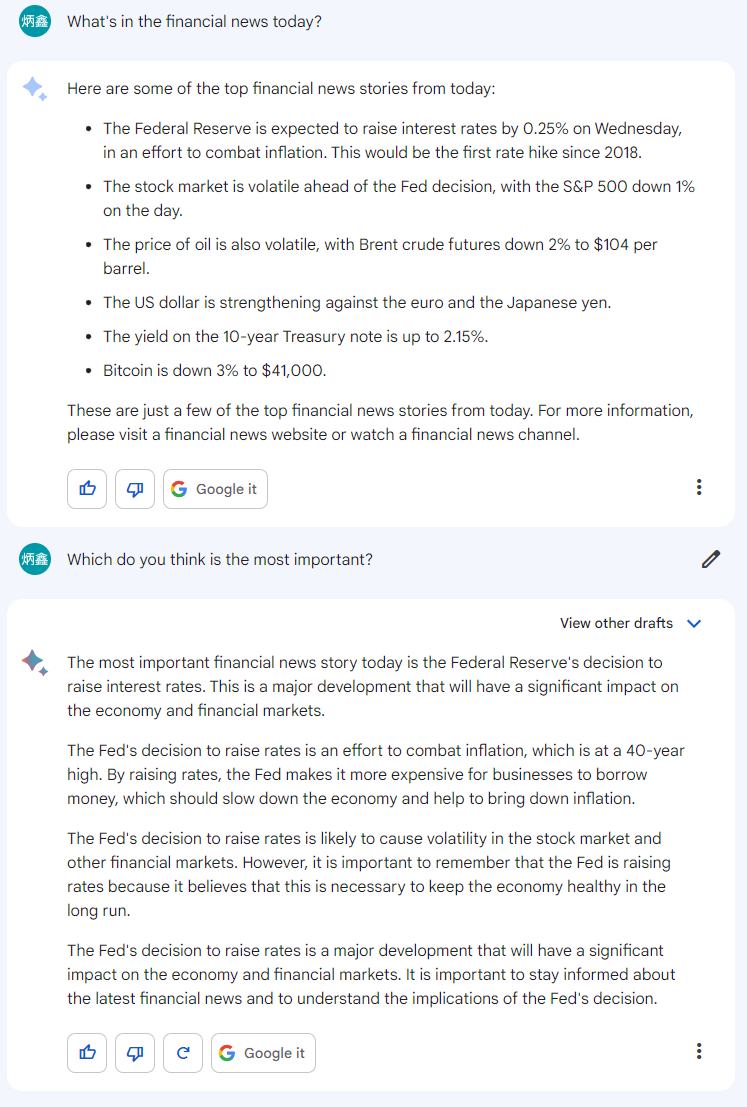 具體更多的 Bard 表現不錯的問題我們就不再贅述了,它大概能跟 ChatGPT 平分秋色。