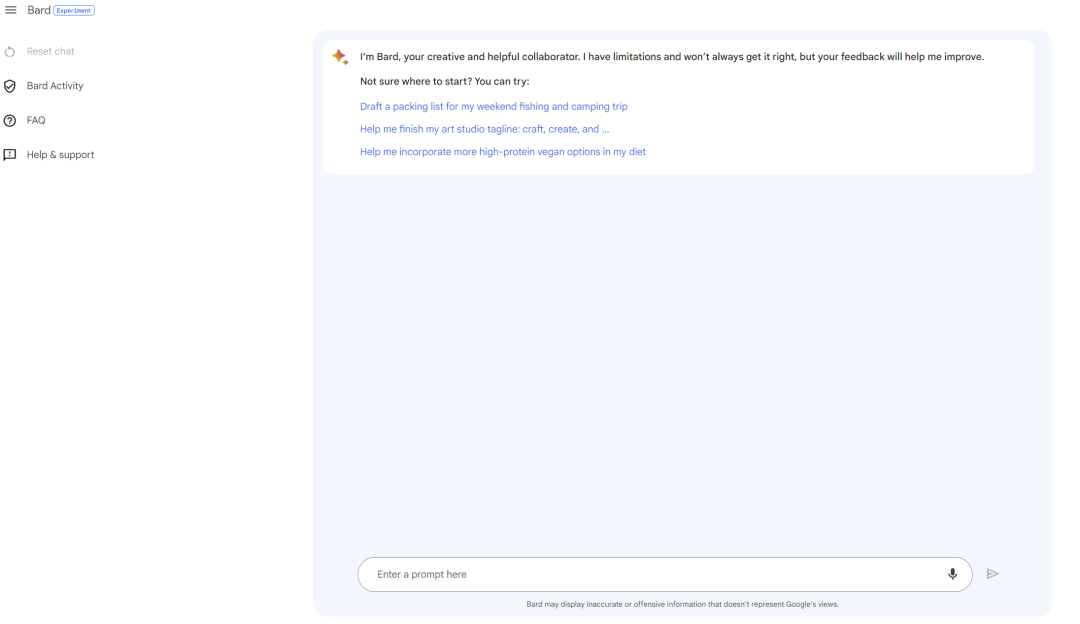 知危編輯部申請之後,很快就通過了,Bard 的界面長這樣: