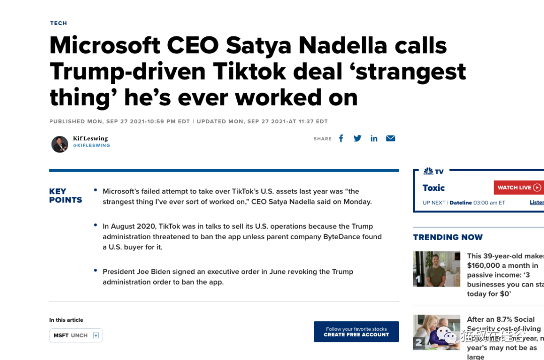 而另一方面,渴望撿漏的美國買家們卻在躍躍欲試。微軟和沃爾瑪兩大巨頭順勢跟進,想趁機低價接盤,甚至願意給特朗普政府支付“好處費”。微軟CEO納德拉去年尷尬地承認,在美國政府幫助下洽購TikTok,是自己所做過最彆扭的事情。