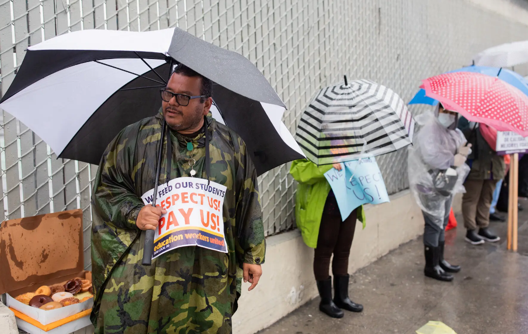 罷工已經醖釀了好幾個周。它包括多達6萬名學區員工的支持,他們是洛杉磯教師聯合會(Local 99 of Service employees International Union)的成員。