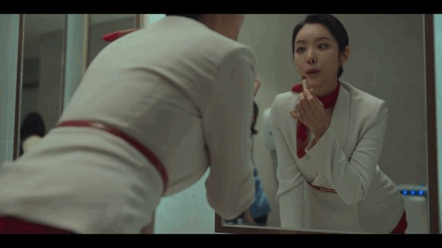 空姐時期的崔惠廷,有很多次對鏡塗口紅的特寫。