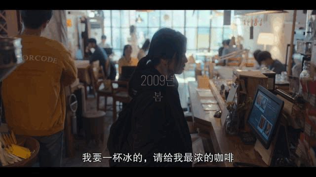 第一次到咖啡店,睏倦難耐的她“要一杯最冷的濃咖啡”,店員報出“冰美式咖啡加濃縮”時,她露出明顯的怔愣。