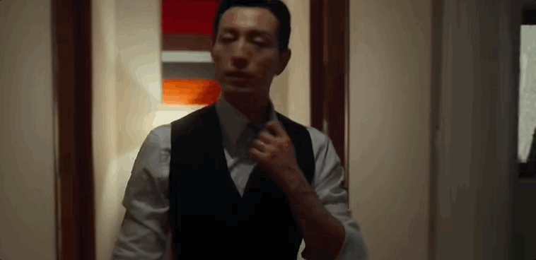 第一季,河道英第一次和周汝正見面時,剛得知老婆有霸凌別人的前科,心裏焦急,不停看錶。