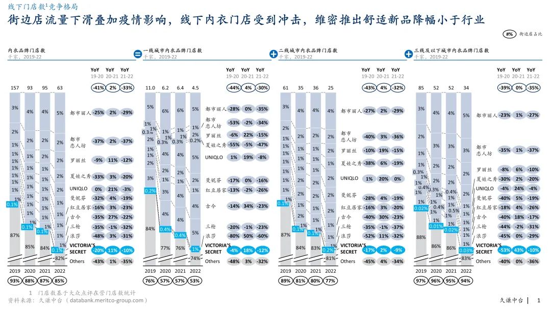 維密、曼妮芬等品牌順應流行趨勢變化,推出無尺碼、果凍條、美背系列產品,對抗行業下行,門店數降幅低於行業水平