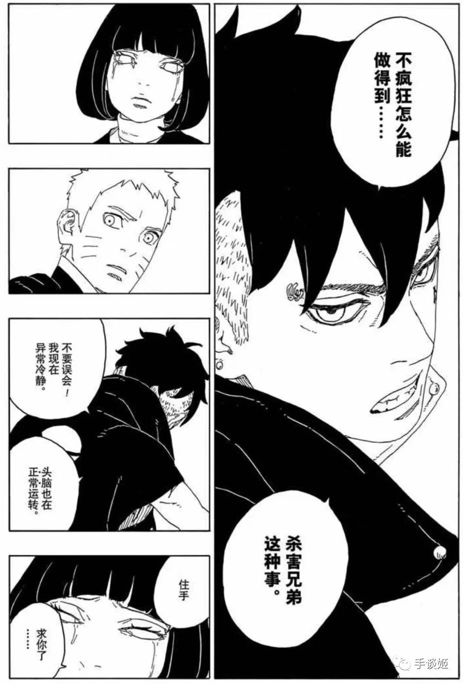 本來姬覺得川木的腦回路挺逆天的,但是這個戀愛腦一出現姬覺得好像也可以接受川木的想法了。有網友表示,博人受此苦難,人設一下子就立起來了;也有網友説,把鳴人等關到小黑屋裏的設定,一方面可以展現博人之後的成長,一方面也能照顧到老讀者,處理得當。