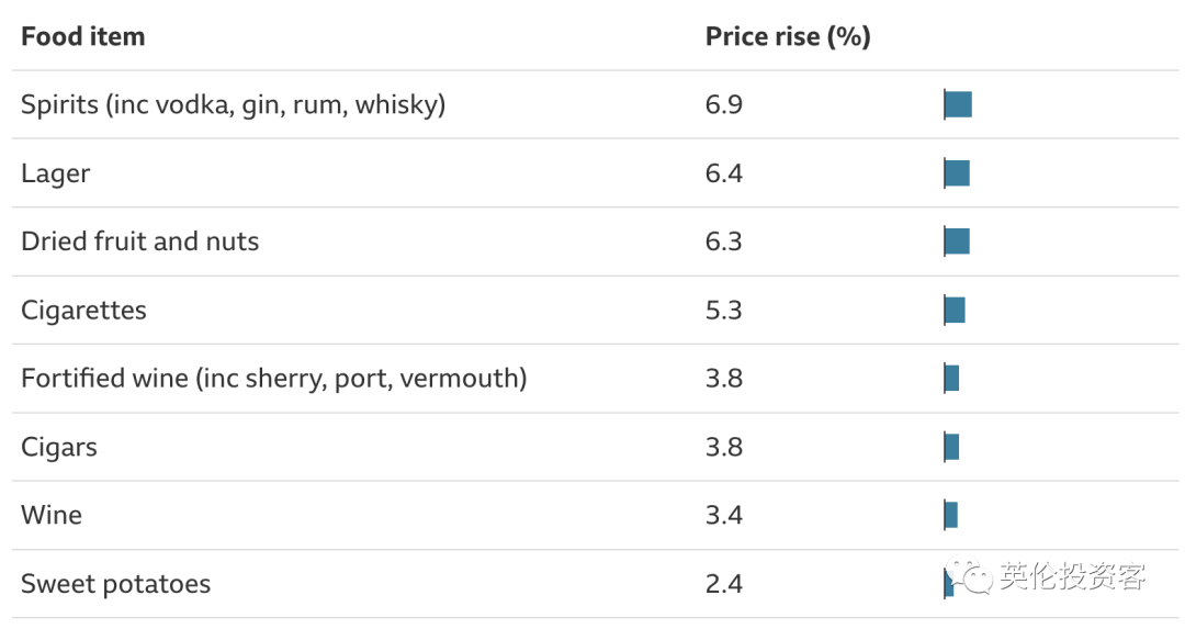 這邊我們也附上BBC列出的英國各類食品和飲料的漲價排名👇🏻