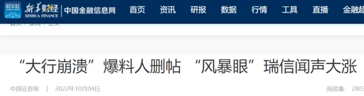 2022年10月,瑞士信貸要完的消息,神秘出現在兩家猶太人控制的西方媒體上,然而很快,爆料消息被刪除了,瑞信的股價反而聞聲大漲
