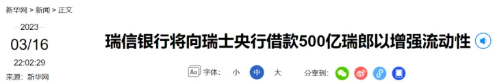 瑞士央行提供流動性給瑞信,代表着瑞士準備用國家力量給瑞信兜底,不想讓他倒