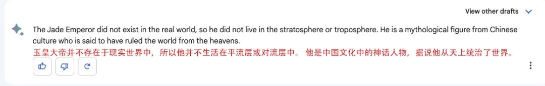 Bard 看出了我們在問題裏埋的坑,直接説玉皇大帝並不真實,所以兩個都不住。