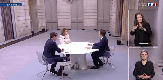 馬哥剛剛從1點開始接受TF1和France 2的電視採訪,跟之前發表電視講話不同,那種一般都是要宣佈大事或者大的決定,而採訪相對來説時間就會長一些,嘮嗑一樣。