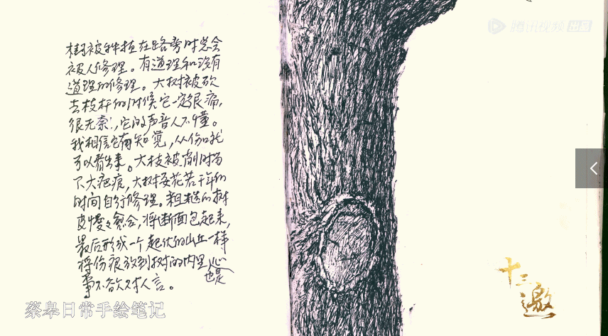 但是十幾年過去了,現在這棵樹長得最高最直。蔡皋用圖畫和文字記錄了,大樹的十年: