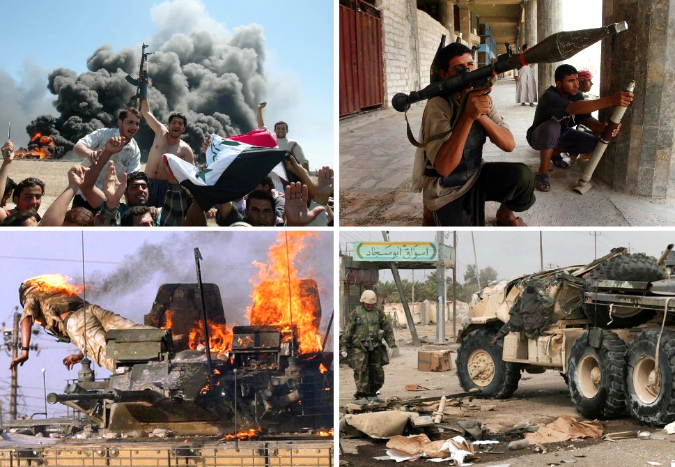 然而,讓美國及西方國家大惑不解的是,伊拉克軍隊的毀滅和薩達姆的垮台並未讓他們如願以償,反倒激起了伊拉克民眾以游擊戰和襲擾戰為主要形式的反抗活動。他們因陋就簡製作的路邊簡易爆炸裝置使以美國為首的多國部隊嚐盡了苦頭,遭受了重大的損失。