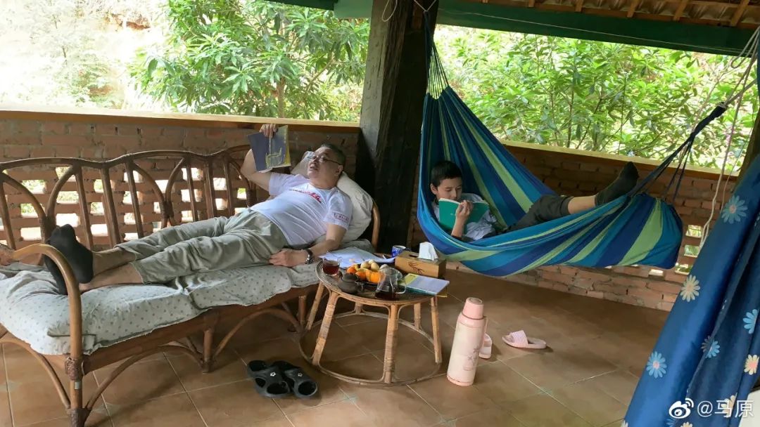 2020年4月,馬原和兒子馬格在閲讀。(圖片來源@馬原)