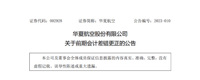 昨日早些時候,華夏航空發佈了《關於前期會計差錯更正的公告》。