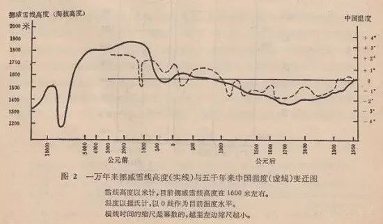竺可楨先生根據歷史文獻重現的中國近五千年來温度曲線。圖片來源:《中國近五千年來氣候變遷的初步研究》