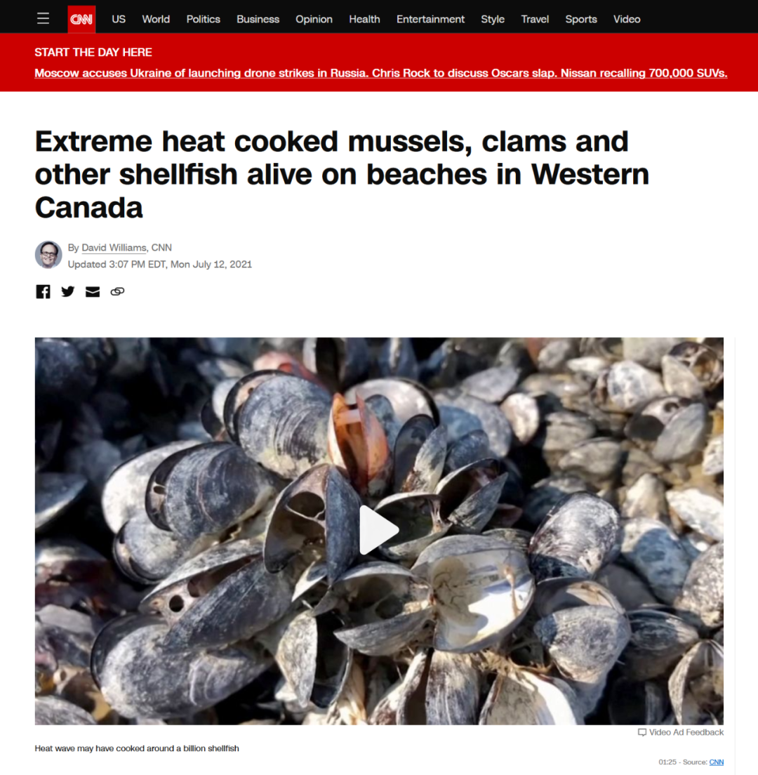 加拿大西部海灘上,極端高温烤熟了水生有殼生物。圖片來源:CNN