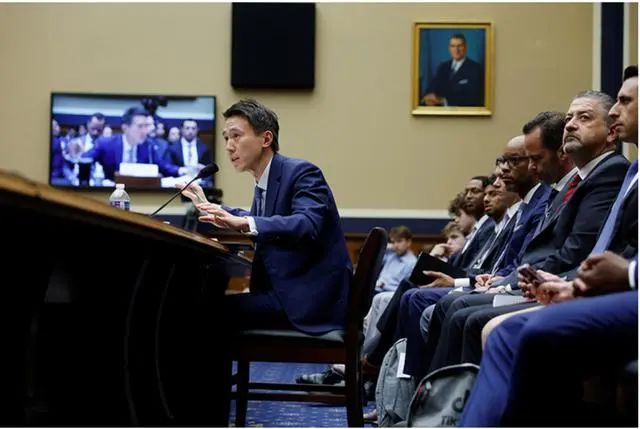 2023年3月23日,美國華盛頓特區,TikTok首席執行官周受資出席美國國會眾議院能源和商務委員會聽證會,回應來自美方議員“國家安全”等方面的問題。