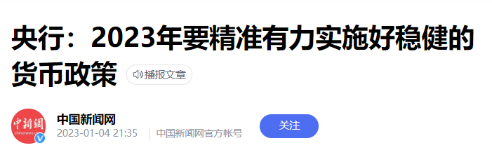2023年中國人民銀行工作會議在1月4日以視頻形式召開,強調了2023年要精準有力實施好穩健的貨幣政策。