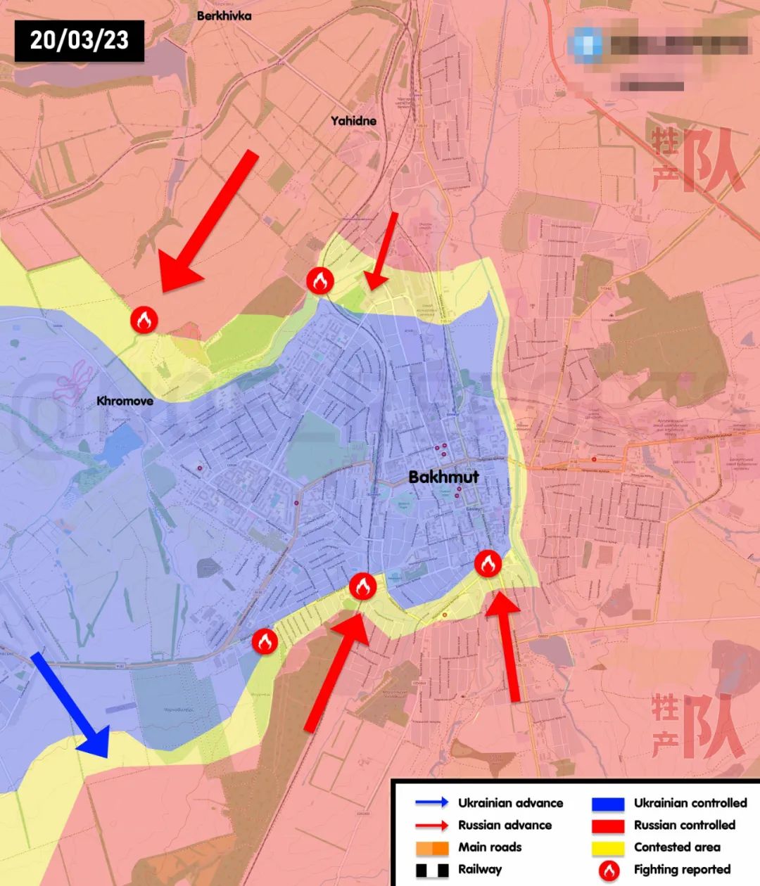 澤連斯基敢前往巴赫姆特前線,就是因為烏軍重新穩住了戰線,再次與俄軍形成了對峙的局面。在巴赫姆特西部方向,烏軍發起反攻,成功將俄軍擊退了3公里,再次解除了T0504公路的威脅。這已經不知道是烏軍第幾次在T0504公路方向擊退俄軍了。