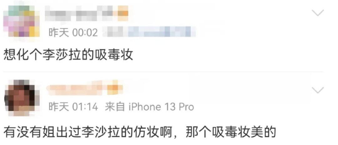 打開任意一條仿妝李莎拉視頻,評論區中都充斥着堅定維護“毒蟲妝”的粉絲。
