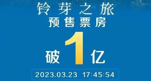 人氣依然高漲,新片《鈴芽之旅》在中國內地預售票房就破億,今天上映首日拿下票房冠軍。成為春節檔後表現最強的引進片。