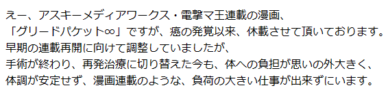 《遊戲人生》更新頻率的放緩固然有作者的摸魚心態影響,不過更關鍵的原因顯然還是胃癌的復發,以及全身上下的新病舊病作祟。
