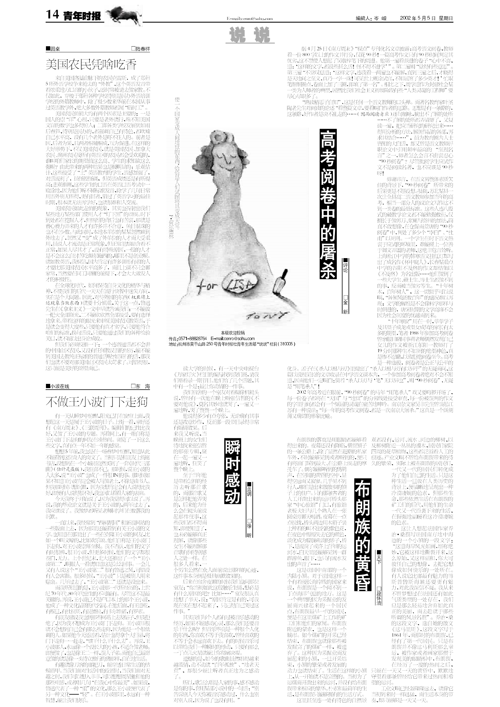 記憶中洋洋灑灑數千字的《高考作文閲卷手記》刊出後,全國各省教育行政部門“人人自危”,都在猜測披露的是哪個省的事。記憶中當時筆者還火上澆油寫了一篇時評《高考閲卷中的屠殺》刊登在浙江的《青年時報》,意猶未盡之餘追加一篇雜文《給李白、杜甫判死刑》刊登在山東的《齊魯晚報》。