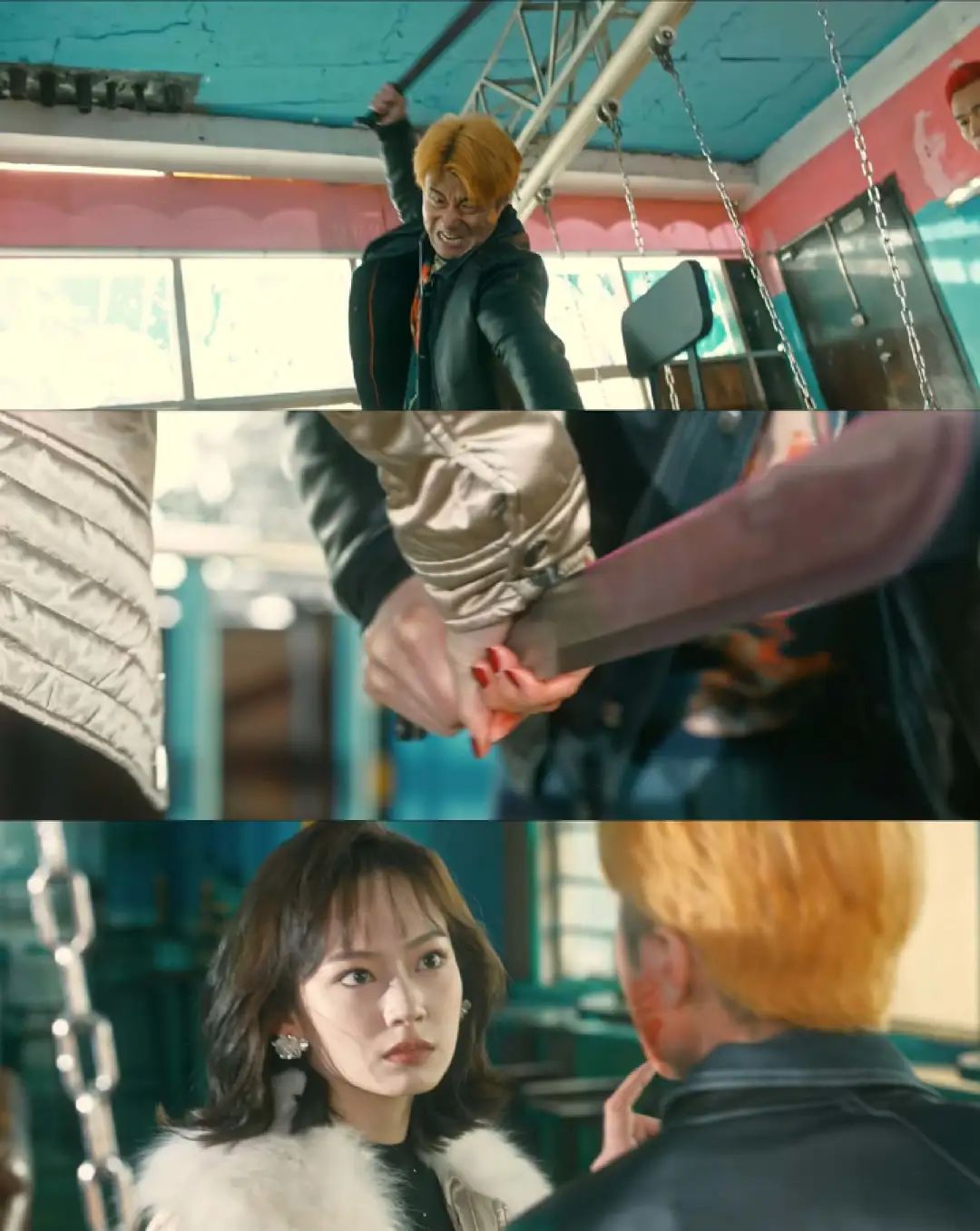 劇中,她作為黑幫大佬的妹妹,有雷厲風行的一面。