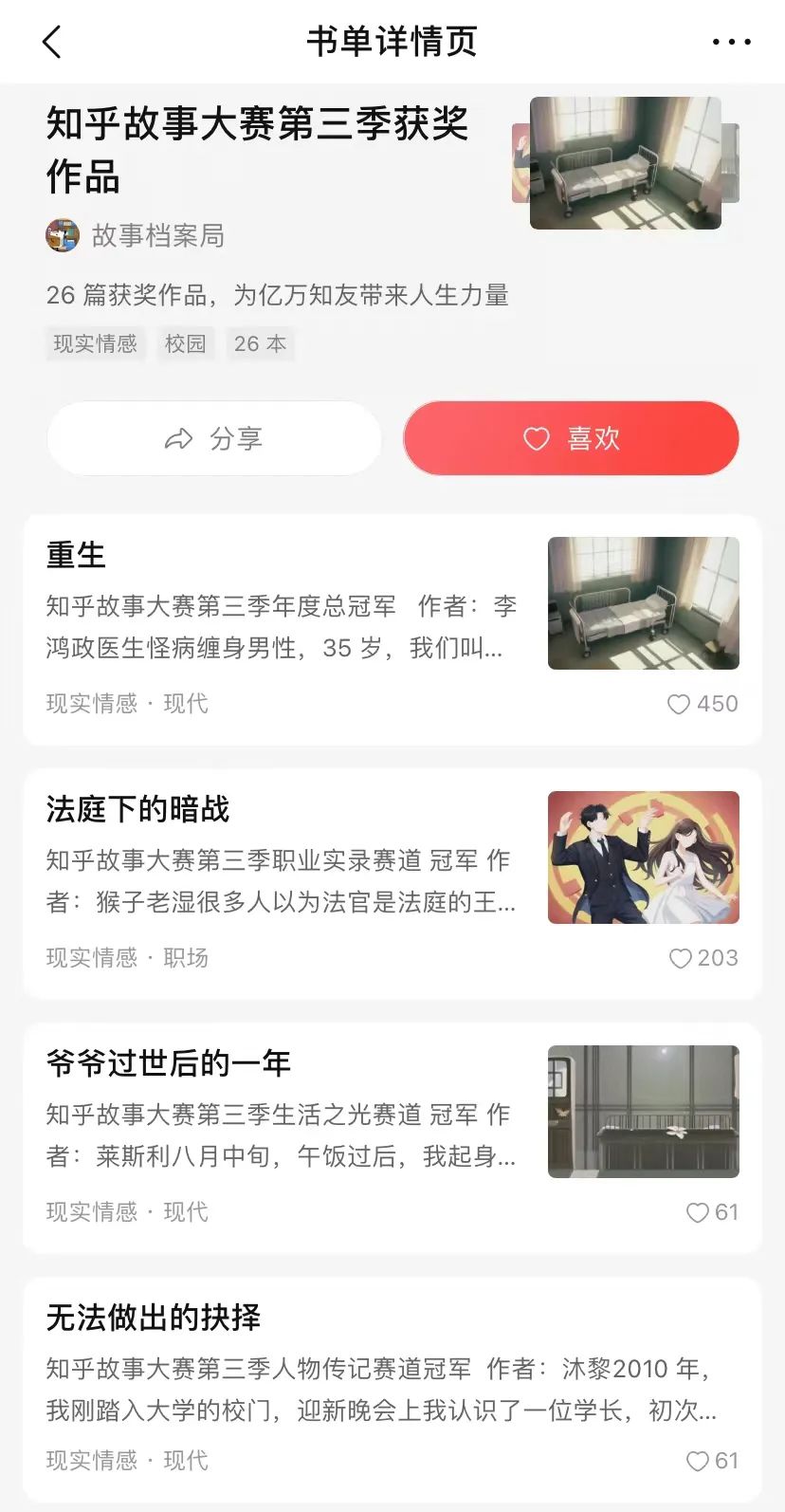 “這存在一個心理預期的問題。我其實挺喜歡看小説的,知乎的短篇故事耗時短、節奏快,閒暇時看看也不耽誤事。只是在打開知乎社區時,我更想要瀏覽的是嚴肅類內容,也不喜歡在搜索問題時被推薦許多小説。但如果是一個專門的小説App,其實知乎故事的閲讀體驗還不錯。”她説。