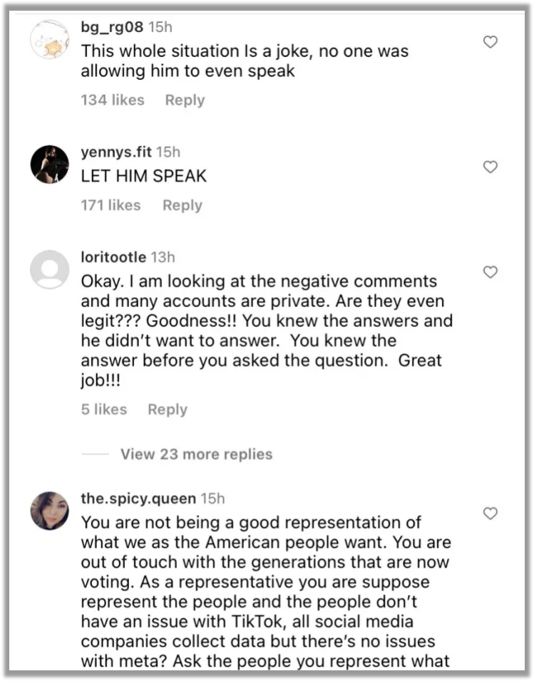 “看這樣一場聽證會對我孩子智商的損害,遠勝於刷TIKTOK視頻。”