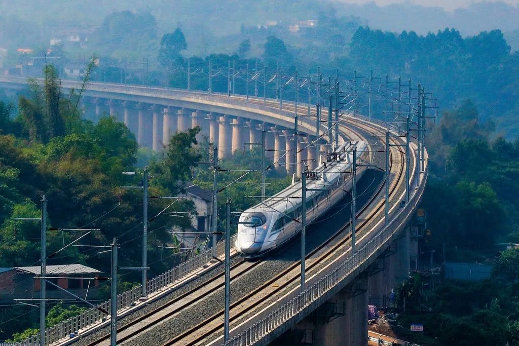 沿軌道有序行駛的列車