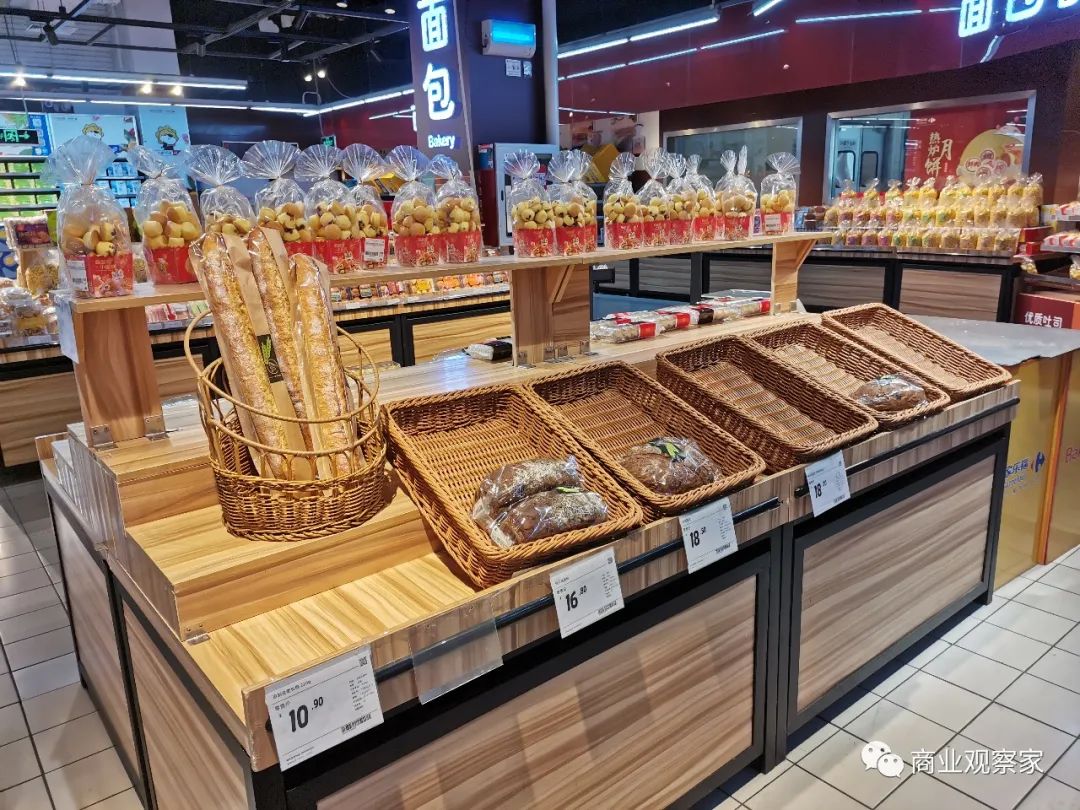 比如烘培麪包,家樂福自制長法棍,購物卡限制結算之前常規售價都是7.9元,現價是10.9元;其他麪包漲幅大都保持從15.8元上漲到24.8元不等。米麪糧油等日常基本生活用品從限制購物卡購買到開放,但選品基本上是價格較貴出30%以上的商品。