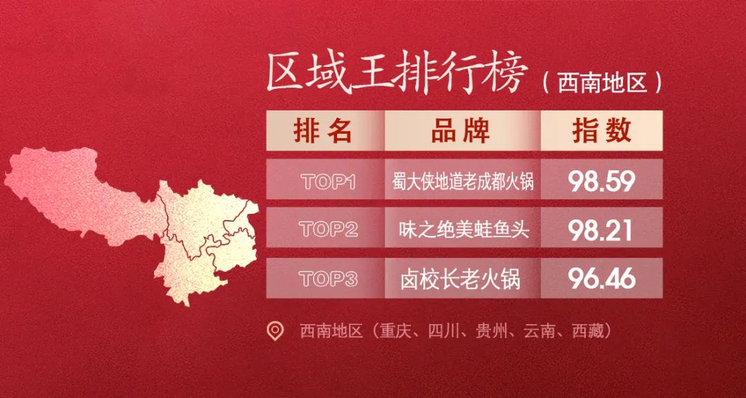限於篇幅,每個區域只摘選前三甲,完整榜單詳見《2023中國火鍋經營發展報告》。