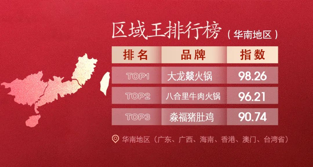 華南地區的顧客喜食清淡,豬肚雞和牛肉火鍋的大本營也在此處,雙劍合璧,倒也建了一條護城河,儘管如此,前5還是跑進了兩個川渝火鍋品牌。