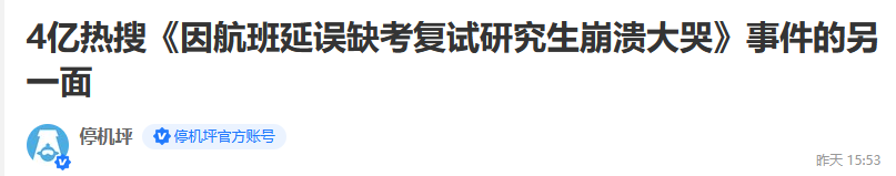 原文鏈接:《4億熱搜《因航班延誤缺考複試研究生崩潰大哭》事件的另一面》