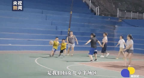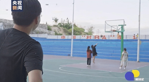 穿拖鞋抱孩子的阿姨,投籃都很準(圖源:央視新聞)