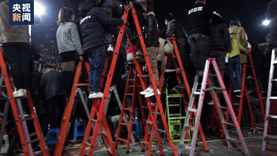 座位不夠,人字梯來湊(圖源:央視新聞)