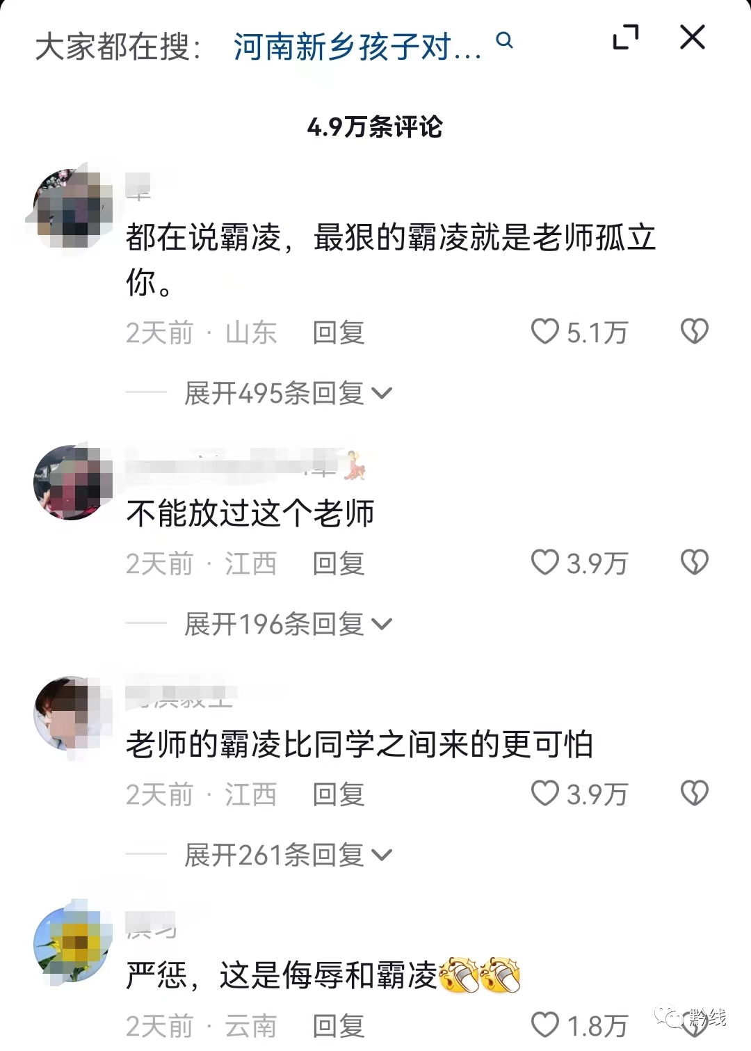 滿屏都是“最狠的霸凌就是老師孤立你”,還有許多人呼籲不能放過老師。