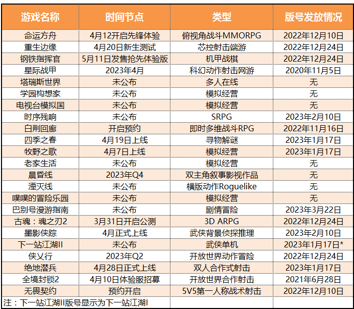 這種變化,從今年發佈會的遊戲陣容也可以明顯看出。此次公佈的23款遊戲,其中有16款都是已經取得版號的產品,而且除了《星際戰甲》《全境封鎖2》之外全都是2022年版號重啓之後新拿到版號的產品。