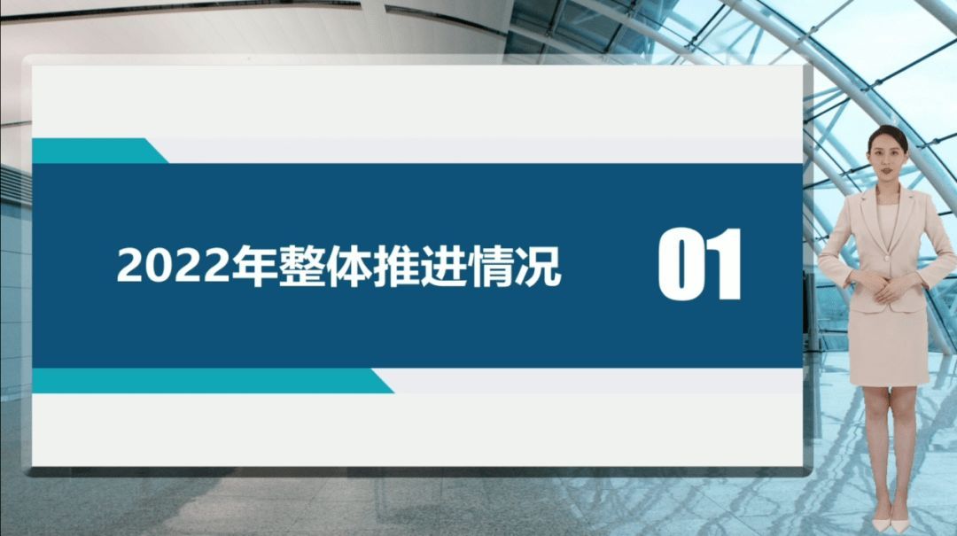數字主播白曉言彙報了股份公司2022年數字化轉型工作總結。2022年,股份公司制定了夯實數字化轉型基礎、全面推進業務流程數字化、加速推進系統上雲等9大類114項重點工作任務。截至目前,114項重點工作任務已完成95項,整體完成率94.4%。