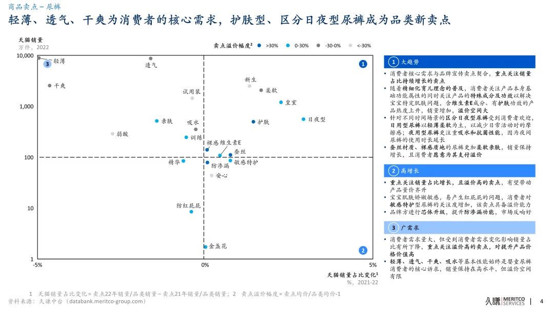 寶寶肌膚嬌嫩敏感,易產生紅屁屁的問題,消費者對敏感特護型尿褲的關注度增加,該賣點具備溢價能力