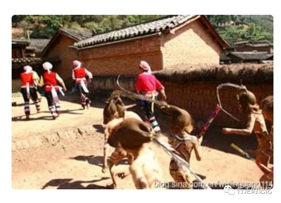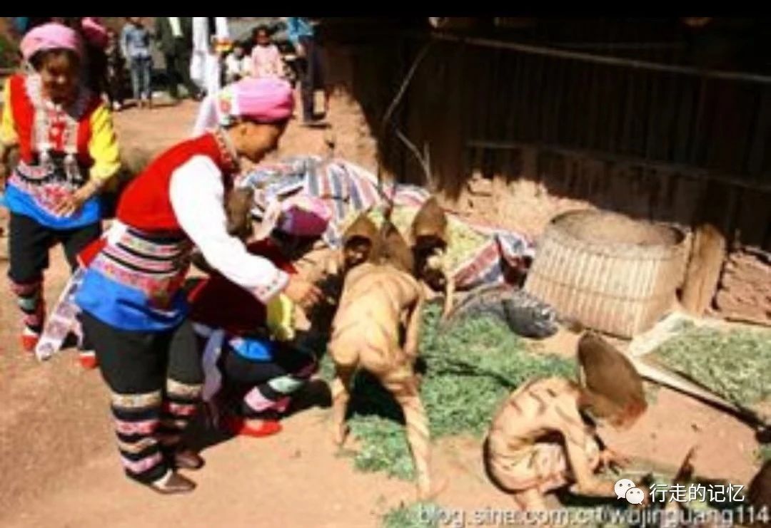 雲南省雙柏縣的彝族阿羅支系要每年都要“跳老虎”。“跳老虎”儀式在每年的農曆正月初八舉行.“跳老虎”儀式有着悠久的歷史。關於“跳老虎”的傳説是這樣的:彝族支系阿羅人祖先居住在深山密林裏,常常被豺豹蟒蛇等猛獸侵擾,莊稼被野狗毀壞,山外人也來騷擾,防不勝防。當時他們先人的生存環境十分險惡。為了保護自己,阿羅人把老虎皮披在身上,跳起虎舞,守衞村寨。有了獸中之王的威懾,村寨安寧了,牛羊平安了。從此,彝族就每年“跳老虎”。據當地人説,彝族古稱“羅羅”,楚雄彝族自治州現在有20多萬自稱“羅羅濮”的彝族。彝語中,“羅羅”意思是老虎,“濮”的意思是族或人,“羅羅濮”就是“虎族”或“虎人”。可以説,“虎舞”是彝族古代虎圖騰的遺風。雲南省雙柏縣的“跳老虎”開始時,由8只老虎參加,以後每天增加1只老虎,到正月十五增加到15只老虎。最先加入的為大老虎,後加入的是小老虎。正月初八這天,經巫師占卜選出8人,披上畫有老虎斑紋的披氈,臉、手、腳上畫着虎紋,扮成老虎模樣,組成一支虎隊。 在“跳老虎”隊伍最前面的是一位稱作“垛西”的長者,虎隊成員都披着畫成虎皮的氈子,全身畫虎紋。“垛西”手持“嘣咚鼓”,帶領一隊老虎,到每家每户前跳舞。“老虎”們逐家逐户除鬼驅祟。每到一家,“老虎”們一邊念着“金銀財寶要進來,一切疾病要出去”等祝福的話,一邊舞蹈。每家則拿出豬肉、紅糖作酬謝。夜間,在田間燃起火堆,“老虎”們繞村寨而行。 在“垛西”的率領下,“老虎”們在稻場中跳起模仿原始生殖、生產、生活舞蹈。這些舞蹈表現了耕田種地、薅秧打穀、上山狩獵的動作。到正月十五的晚上,15只老虎都出場後,全村擺酒慶賀,整夜狂歡。此時全村男女老少一齊參與,從月亮出來一直跳到午夜,把“老虎”送出村外,然後一起在村外煮飯吃,共同祈禱來年風調雨順、五穀豐登、幸福安康。下面是一組在跳老虎現場拍得照片,放在這兒曬曬。