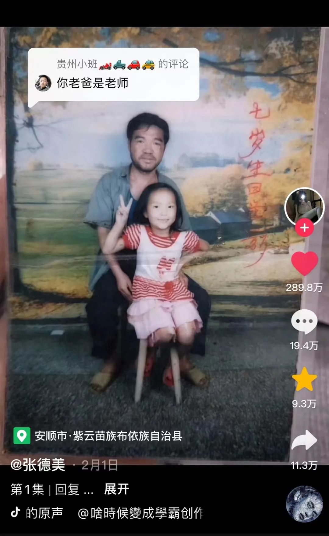 視頻中,童年時期的博主被父親攬在臂彎中,她本想追憶童年與父愛,卻意外發現,評論區湧現了許多父親曾經的學生。