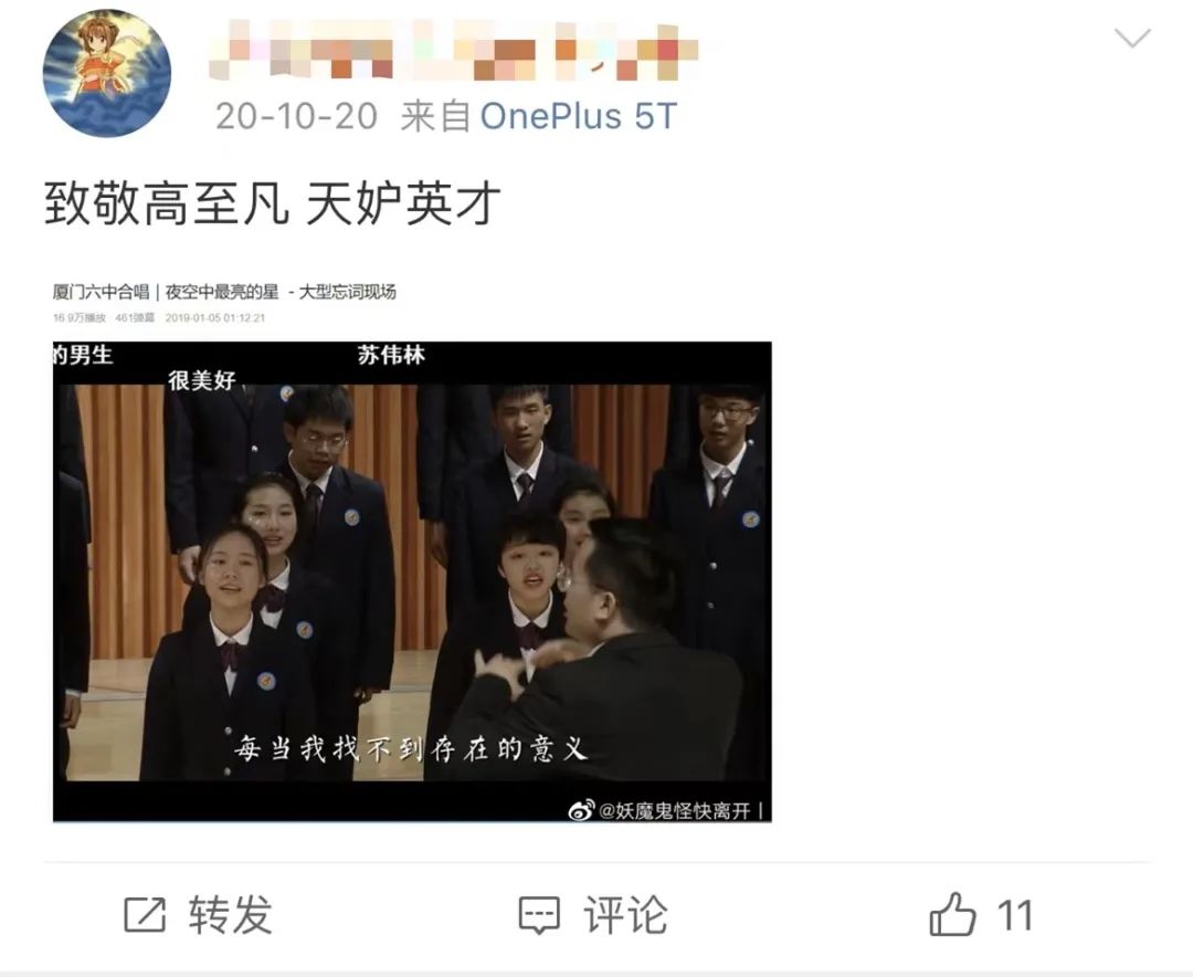 曾被廈門六中合唱團作品打動過的網友,也在微博開始紛紛悼念高至凡。