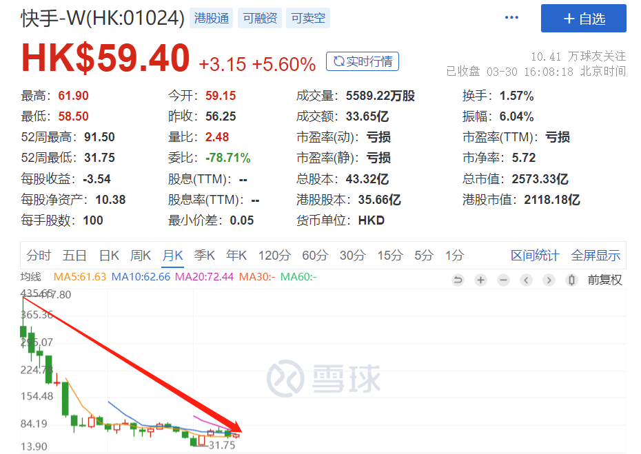 上市即巔峯,現在,快手已經跌去了近 90% 的市值。