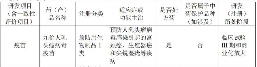 財報顯示,萬泰生物採用具有完全自主知識產權的原核表達病毒樣顆粒技術體系研製出的第二代預防宮頸癌和尖鋭濕疣的重組人乳頭瘤病毒(HPV)九價疫苗,目前正在進行 III期臨牀試驗,2022年已經完成入組及 3 針接種工作,並按計劃進行觀察和隨訪,已完成生產車間建設,正進行產業化放大生產研究工作。