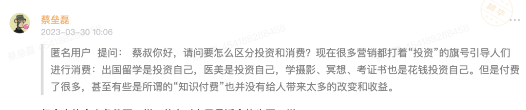 所以以上説得都對,學攝影,做醫美,學投資,出國留學,這些全是投資自己。你把它歸為消費,是因為它們的共同點在於都需要先花下去——投資自己本來就是要成本的,不然叫什麼投資呢?但就是因為你後來沒用它產生收益,或產生的收益不夠大,所以你把它歸為消費了。