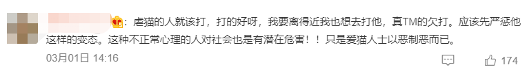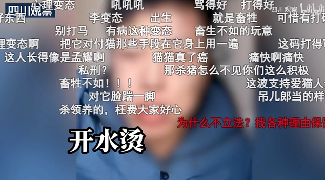 認定虐貓的人一定有反社會傾向,“現在虐殺的是貓,下次虐殺的就是人”,如今教訓他只不過是在穩定治安,“大功勞啊”。